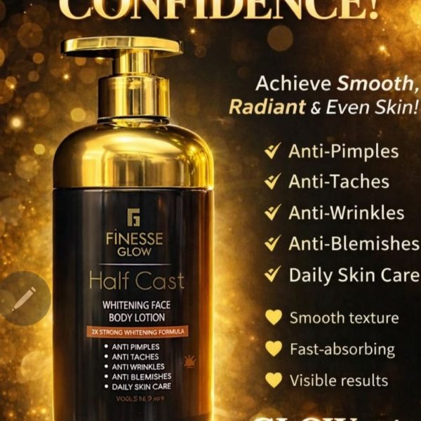 EVERFUME GLOW SECRET HALF CAST ULTIMATE WHITENING FACE & BODY MILK WITH AVOCADO, GLUTATHIONE, COLLAGEN, & KOJIC ACID: Is an advanced lotion specially formulated with effective and active ingredients such as glutathione, collagen, Kojic acid, and Arbutin to give a deep moisturizing, lighten pigmentation and fade away stretch marks illuminates complexion and clarifies skin.For all skin types