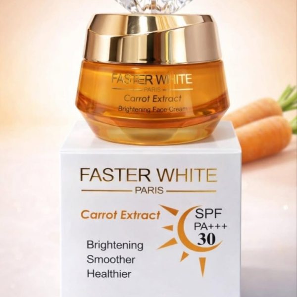 The Faster White Carrot Extract Brightening Face Cream is a specialized facial treatment designed to intensely brighten the skin and even out the complexion. It is formulated as a powerful lightening agent to target specific facial concerns while providing a radiant glow.
