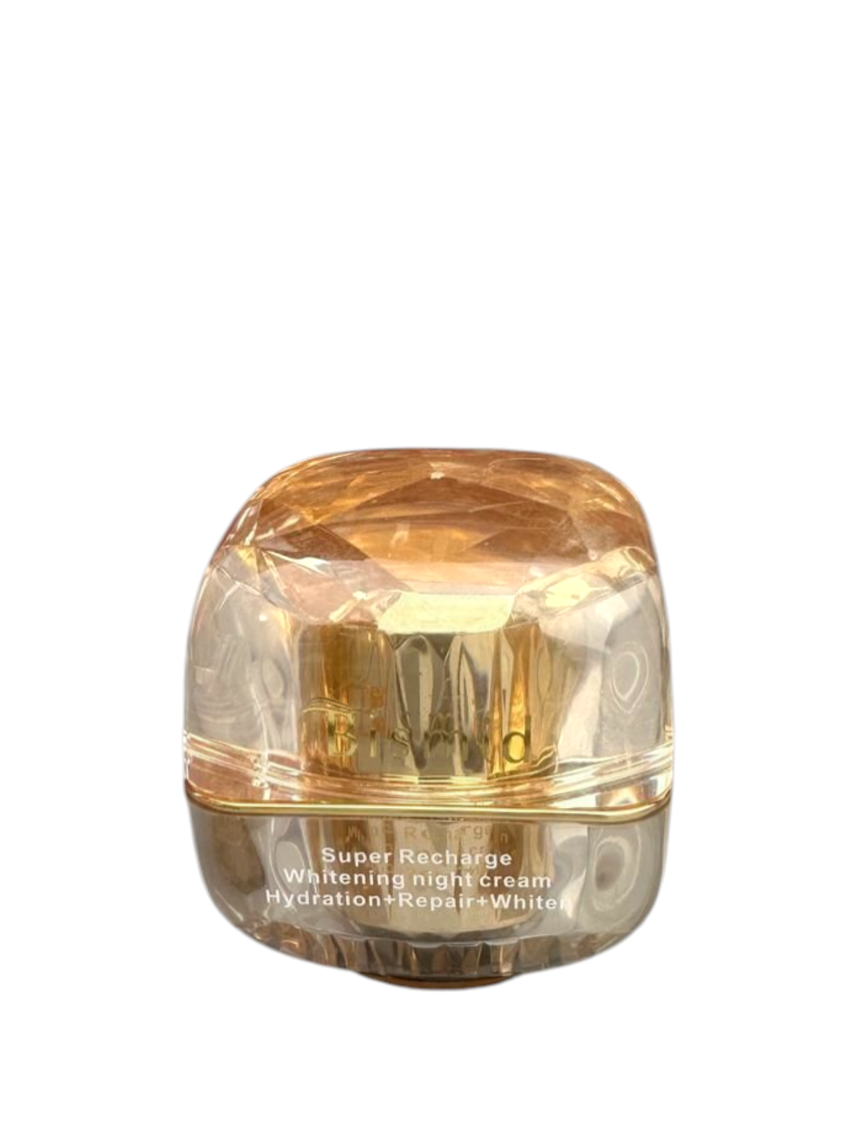 Bismid Super Recharge Whitening Night Cream is a skincare product that helps to brighten the skin, reduce dark spots and blemishes, and promote a more even and radiant complexion overnight. It works while you sleep to hydrate, repair, and rejuvenate the skin, leading to a softer, smoother, and more luminous appearance. This cream is formulated to be a safe and effective solution for achieving a brighter, fairer, and younger-looking complexion.