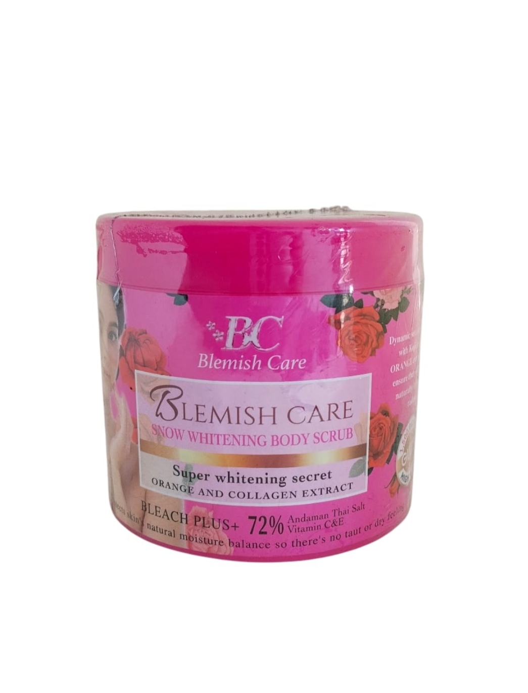 The Blemish Care Snow Whitening Body Scrub is an exfoliating product designed to remove dead skin cells, smooth the skin’s texture, and create a brighter, more even-toned complexion. It works by polishing the skin to reveal a softer, more radiant layer underneath, and is formulated to help with blemishes and uneven skin tone.