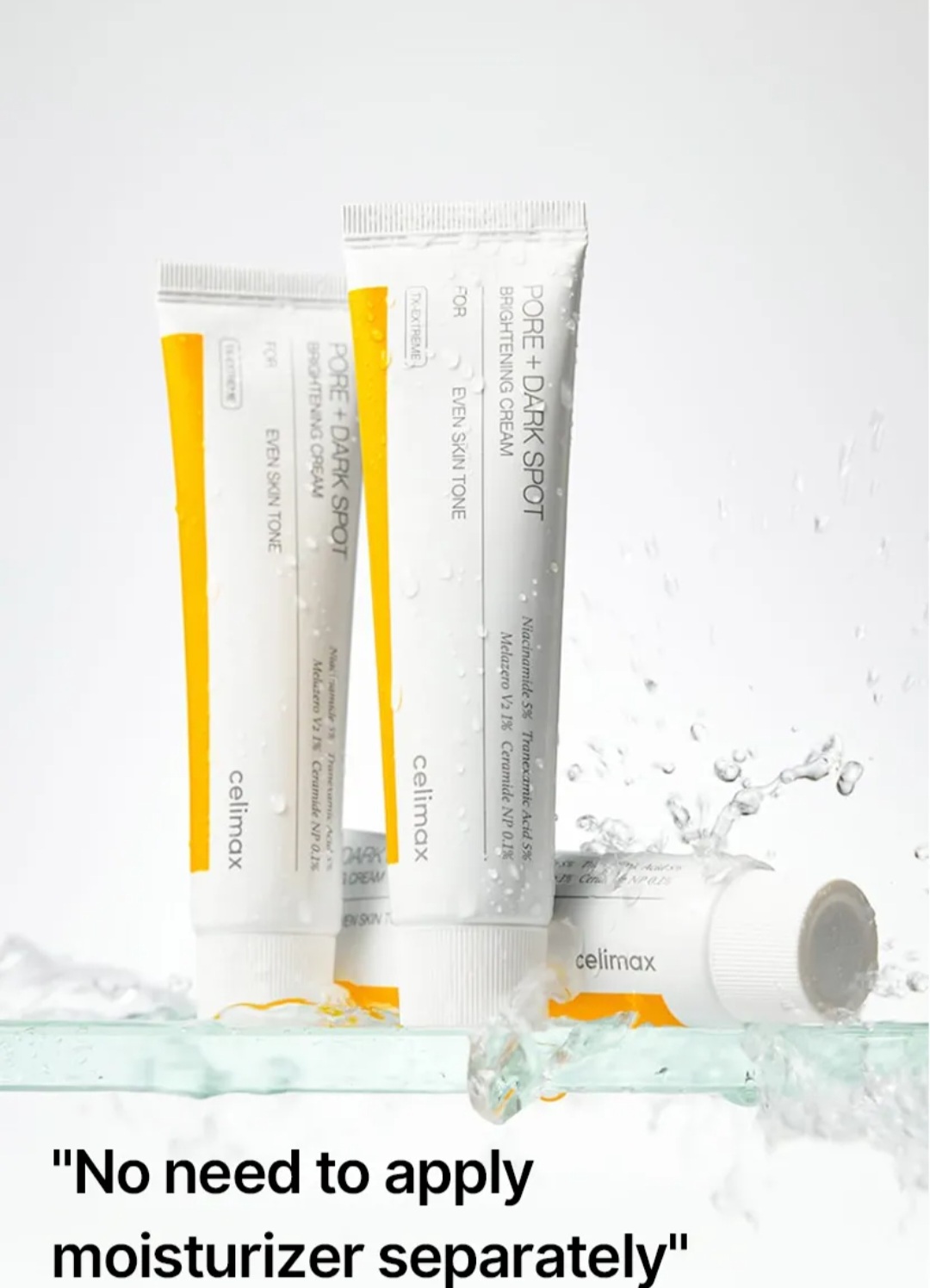 Celimax Pore + Dark Spot Brightening Cream is a hydrating moisturizer that targets dark spots, uneven skin tone, and enlarged pores with a blend of niacinamide, tranexamic acid, and Melazero V2. It strengthens the skin barrier with ceramides and hyaluronic acid, absorbs quickly without being sticky, and is suitable for sensitive skin.