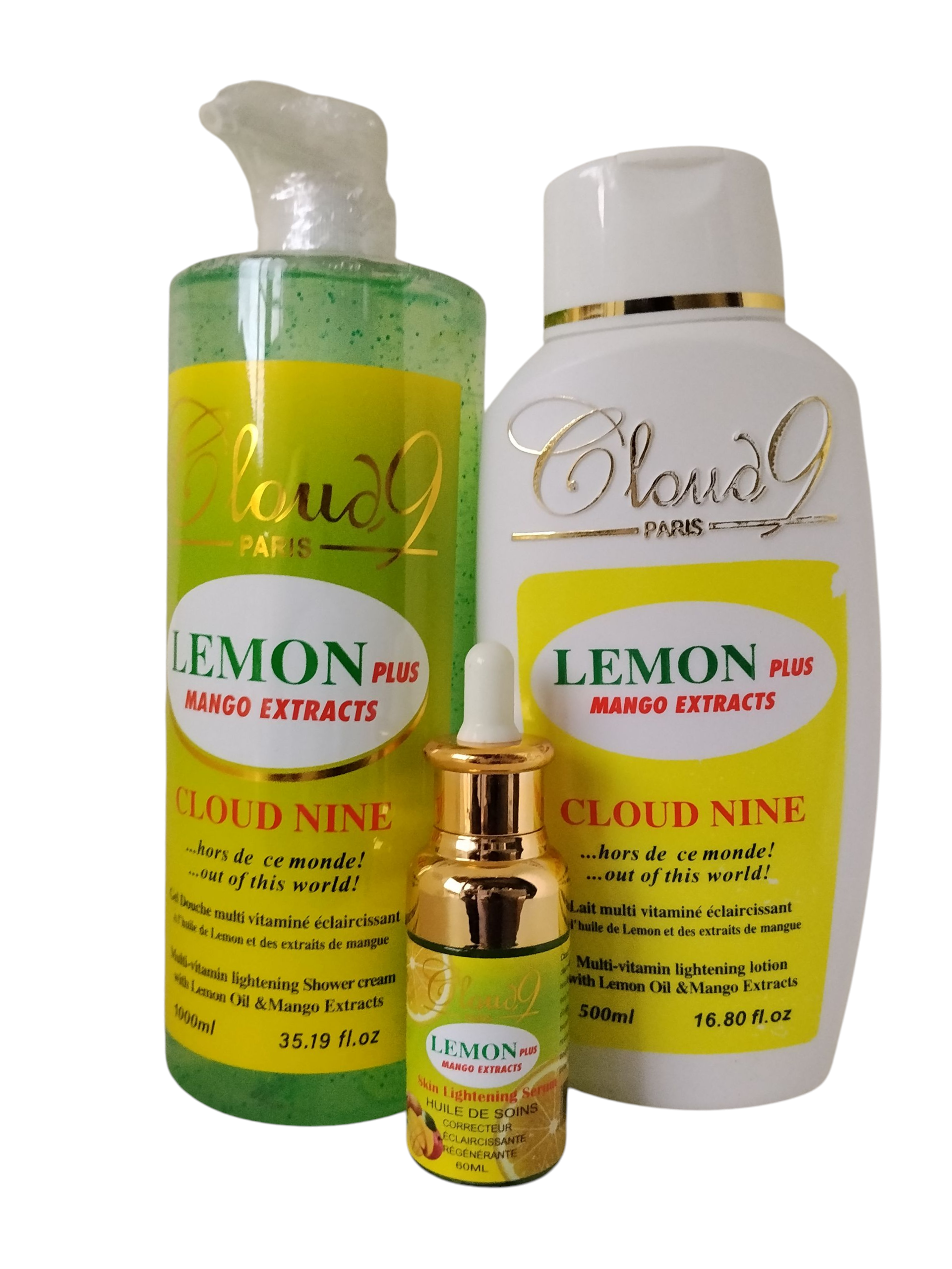 Cloud 9 Lemon Plus Mango Extracts Shower Cream, Multi – Vitamin Lotion, And Skin Lightening Serum