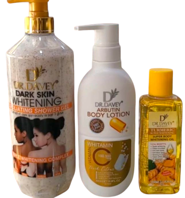Dr Davey Arbutin Whitening Shower Gel, Vitamin C Body Lotion and turmeric oil