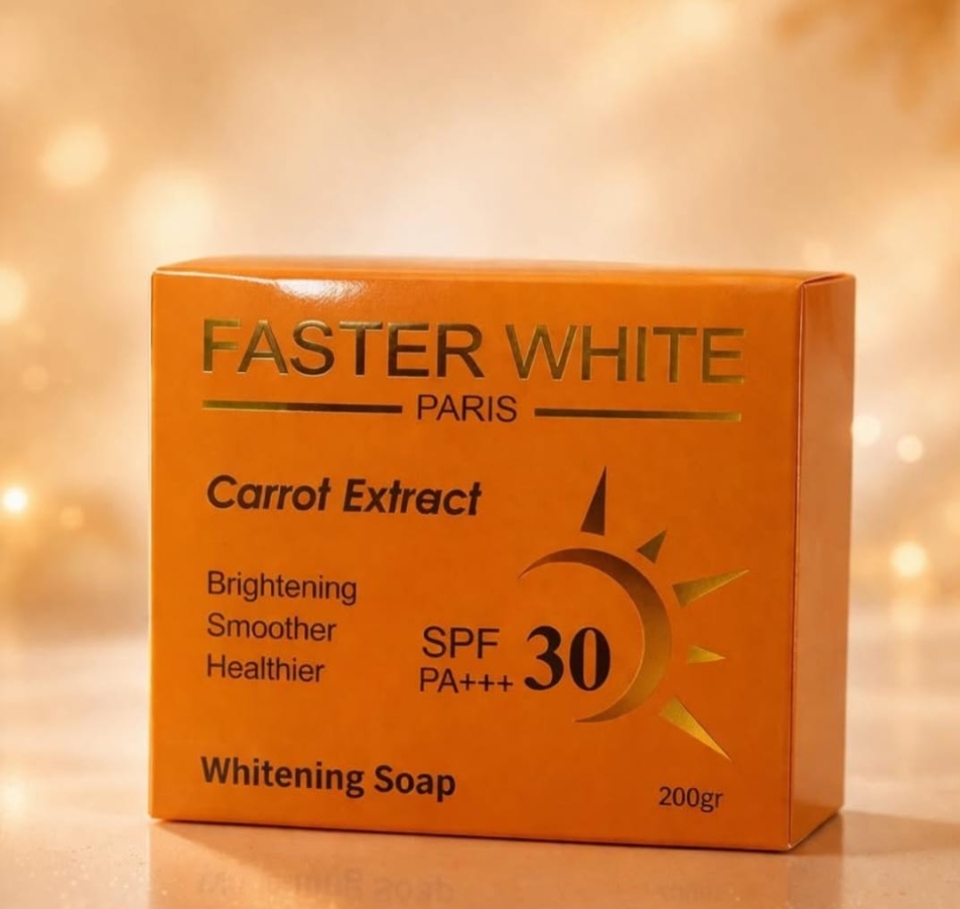 Faster White Carrot Extract Brightening Soap is a deep-cleansing and skin-lightening bar designed to brighten dull skin, even out skin tone, and reduce the appearance of dark spots. Enriched with natural carrot extract, this soap nourishes and smooths the skin while providing a radiant, glowing complexion.