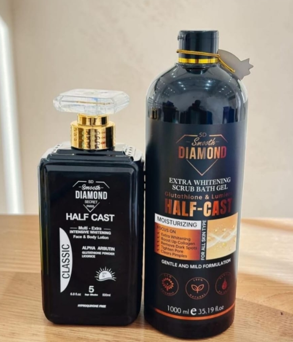 - Smooth Diamond Half Cast Body Lotion: A rich, luxurious whitener formulated with organic ingredients like Papaya extract, Glycolic extract, and Vitamin C to nourish and glow the skin. It often includes antioxidants, sunscreen, and brightening agents such as Glutathione and Kojic acid to help heal scars and blemishes.