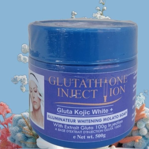 Glutathione Injection Gluta Kojic White+ Molato Soap (500ml) is an intensive, high-performance, and fast-acting whitening soap designed to significantly brighten the complexion and even out skin tone, often within 7 days. It is formulated with a potent blend of ingredients—including Glutathione, Kojic Acid, and sometimes papaya or vitamin concentrates—to target stubborn dark spots, acne scars, hyperpigmentation, and blemishes on both the face and body.