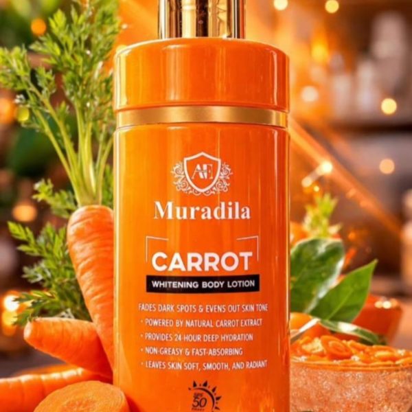 £17.99Muradila Carrot Whitening Body Lotion (500ml) is a nourishing body care product formulated to brighten, hydrate, and even out skin tone. Enriched with carrot extracts and essential vitamins (often including Vitamin E), this lotion helps reduce the appearance of dark spots, blemishes, and hyperpigmentation.
